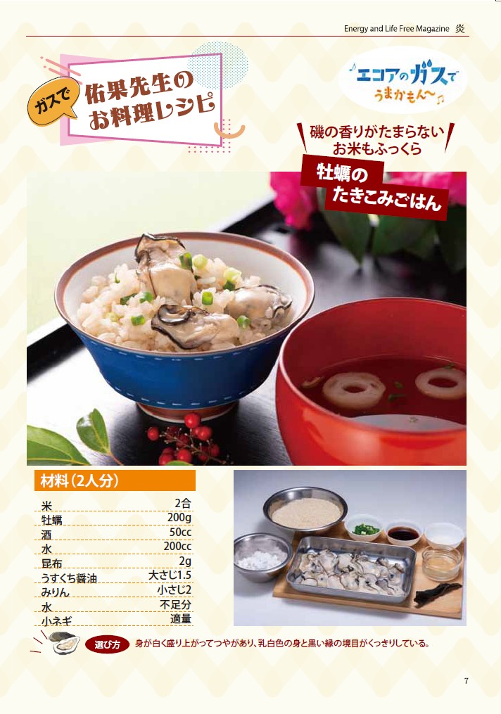 【ガスでお料理レシピ】佑果先生のお料理レシピ – 牡蠣のたきこみごはん